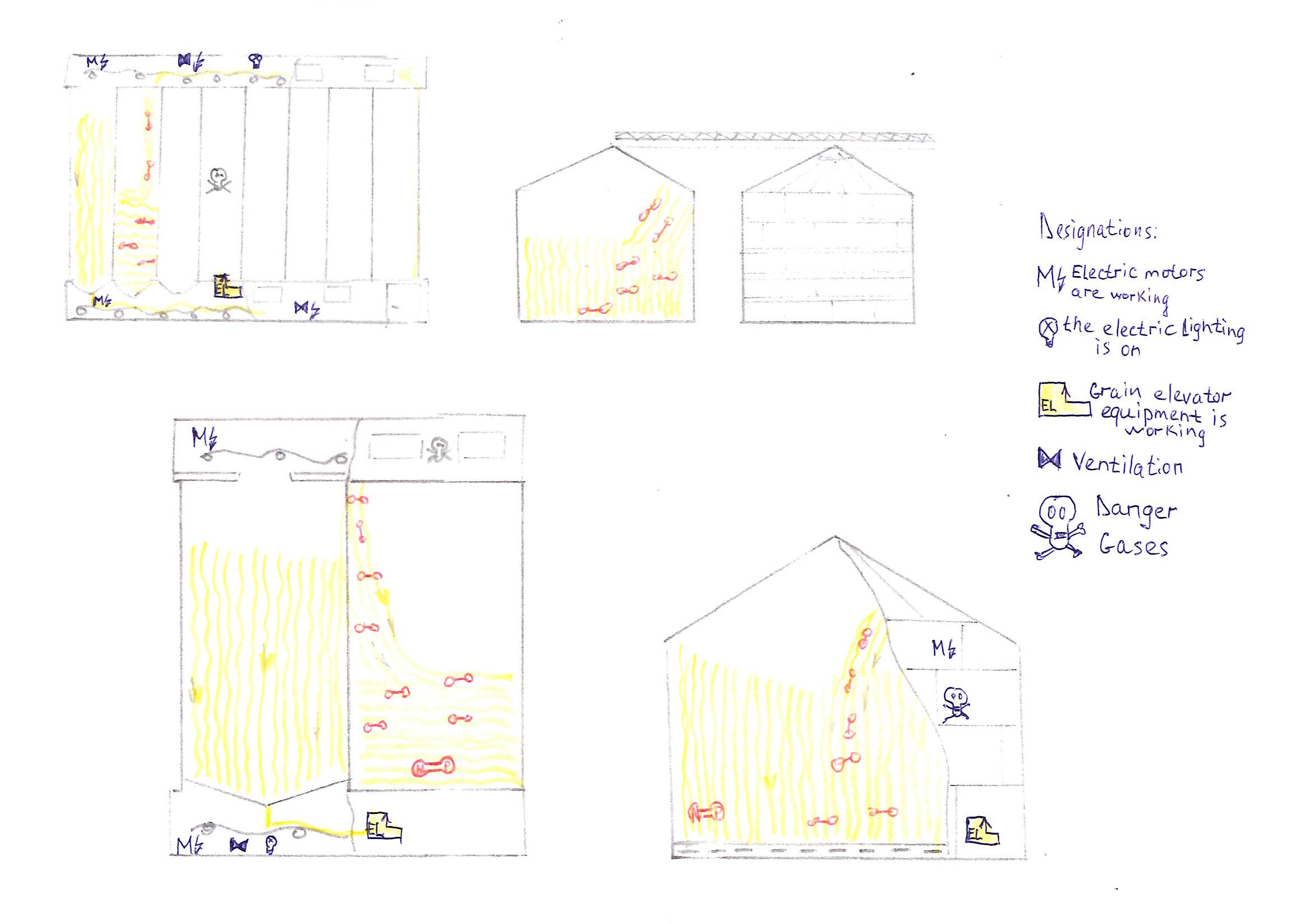 Chemical fumigation in vertical elevators (silo type) is quite expensive: the process requires full or partial pumping of grain between silos, and it is during the loading of grain into another silo that fumigants – phosphides – are added to the grain (grain fumigation occurs) and long-lasting: the fumigation time is proportional to the time and speed of grain movement from a full bin to an empty grain bin; and is unsafe for the environment and personnel – highly toxic phosphine gases during fumigation (with the layer-by-layer introduction of phosphides into the thickness of grain in grain storage facilities to a height of up to 30 meters) spontaneously fill not only the body (upper and lower technical galleries of the elevator), and, due to wind diffusion, spread beyond the grain elevator, into the surrounding area and into the atmosphere.